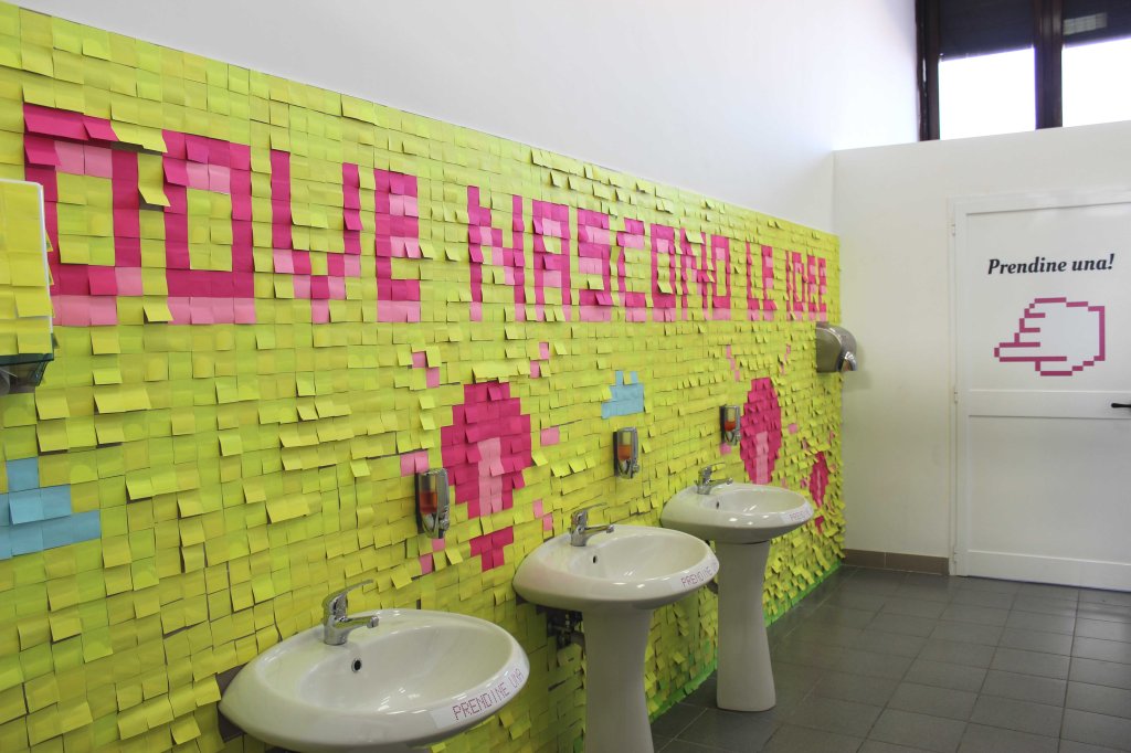 For the event “The Investor Day for startuppers” at LUISS Enlabs, one of the biggest European startups accelerator, I came up with the idea of covering the entire washroom wall with more than 3,500 post-it.